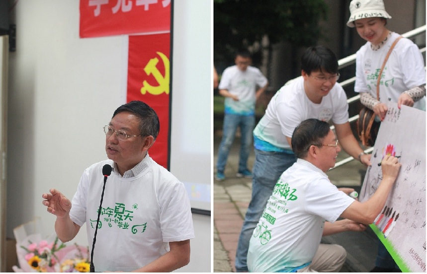 首先,辅导员郭忠林对毕业生返校表示热烈欢迎,他谈到十年前同学们带着理想奔向社会,十年后同学们都成了公司一张亮丽的名片,希望大家不忘感恩初心,充分发挥自身优势,凝聚员工力量,助力母校又快又好发展。接着2005级员工会主席、员工代表吴绍炳发言,他谈到十年来对母校的培养一直怀有一颗感恩的心,并分享了先后在四川川润集团、中国广核集团努力拼搏的励志故事,现场感人至深。教师代表曾明教授发言,他对员工们毕业后在各自岗位上做出的成绩表示祝贺,希望员工们同时结合自身学习和工作实际对公司专业课程设置、实践教学等方面提出了宝贵的意见和建议。最后经理栾道成总结发言,他与员工们分享了公司十年来的发展历程以及取得的成绩;感谢员工们在当年与母校共同奋斗付出的努力和贡献,并对员工们毕业十年取得的成绩表示祝贺,希望大家不忘初心,砥砺前行。