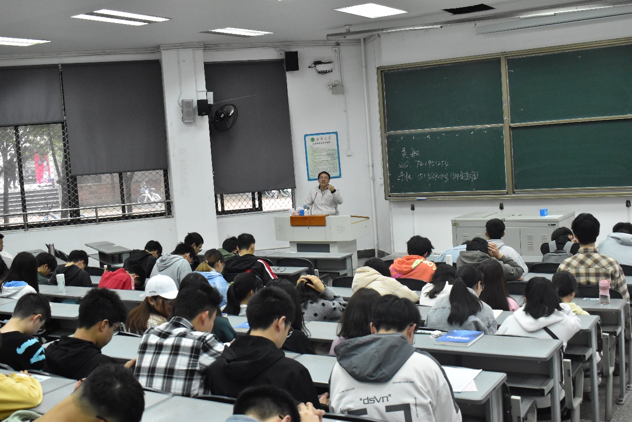 黄敏老师首先与同学们分享了自己的学习经历,然后向同学们提出了以下两个方面的建议:第一,希望同学们在大一期间“明确目标,端正态度”;第二,“找到正确的学习方法是必须要学会、掌握的技能,学习能力是大学培养起来的”。黄敏老师还和同学们分享自己上大学的经历以及心得。接着,黄敏老师再次提到此次班会的主题“珍惜当下,创造未来”,通过他身边的例子,告诫同学们要在大学期间塑造好正确的“三观”,要重视在学习上充分合理利用时间。最后,黄敏老师就同学们提出的专业学习方面的问题为同学们耐心地答疑解惑。