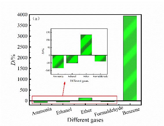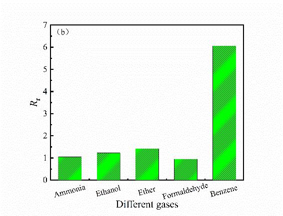 Figure Gas-sensitive response selectivity of TPU/MWCNTs-g-PPy nanocomposites: (a) responsiveness of nanocomposites in different gases; (b) recovery of nanocomposites after adsorption of different gases.
